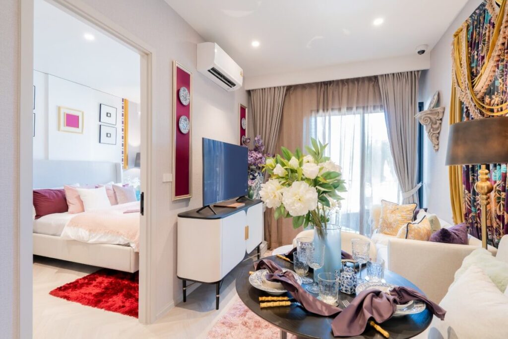 Ideally positioned just across from Boat Avenue in Bang Tao, this freehold condominium development spans 25,350 sqm and comprises seven seven-storey buildings with a total of 789 residences. The project combines neo-classic architecture with Phuket’s distinctive design heritage, creating a sophisticated yet welcoming environment. The interiors feature bold colours, detailed patterns, and art-inspired finishes that lend character and a sense of individuality to each home.