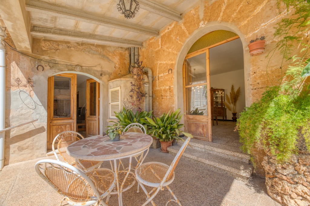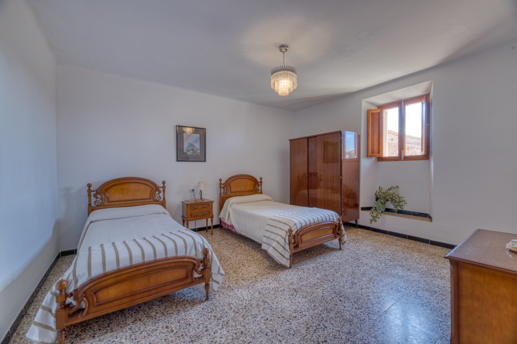 The entrance is through a characteristic semicircular arch leading to a private landscaped patio. From here, access is provided to the surrounding spaces of the house, including multiple living areas and garden connections. The finca’s scale and configuration make it well suited to private residential use or development into a countryside boutique hotel.