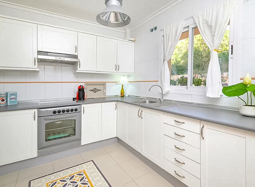 The property forms part of a well-kept development with landscaped community areas and a communal swimming pool, offering additional outdoor space without the need for extensive maintenance. A private garage provides secure parking and storage, while the villa also benefits from pleasant views and easy access to the coast. These combined elements make the property suitable both as a holiday home and for longer stays in Port de Pollensa.