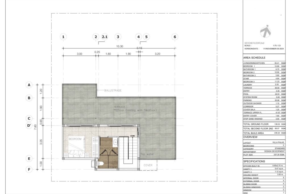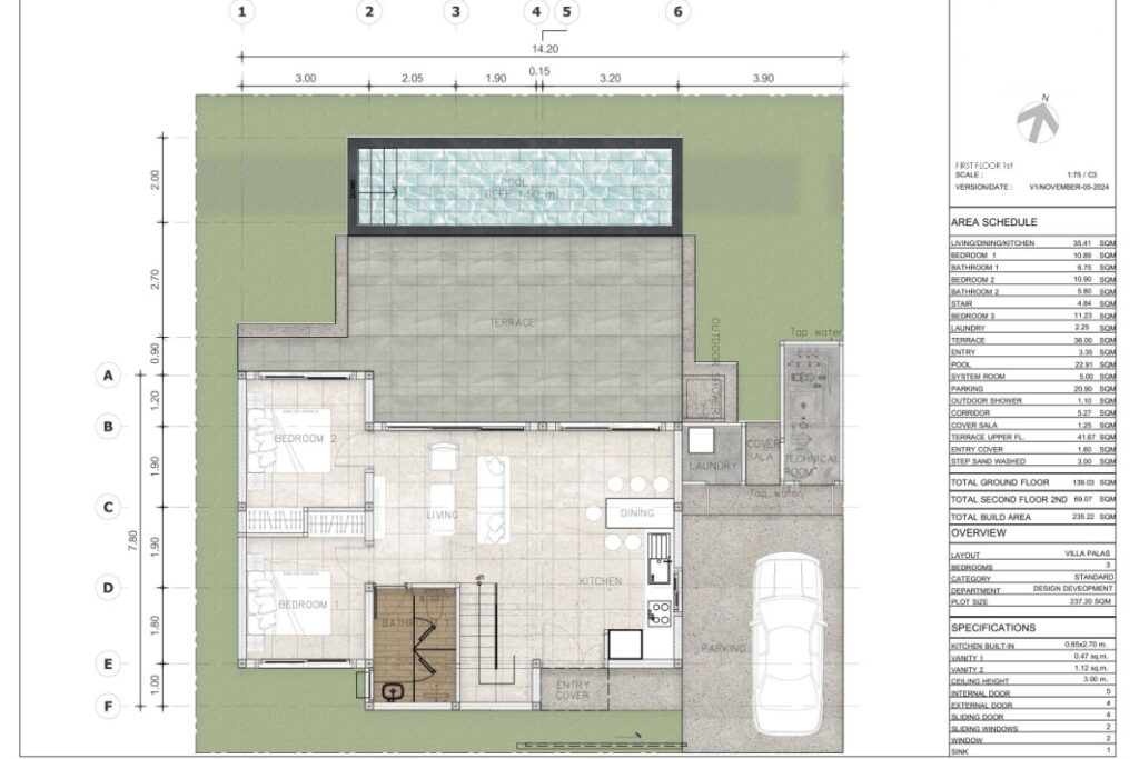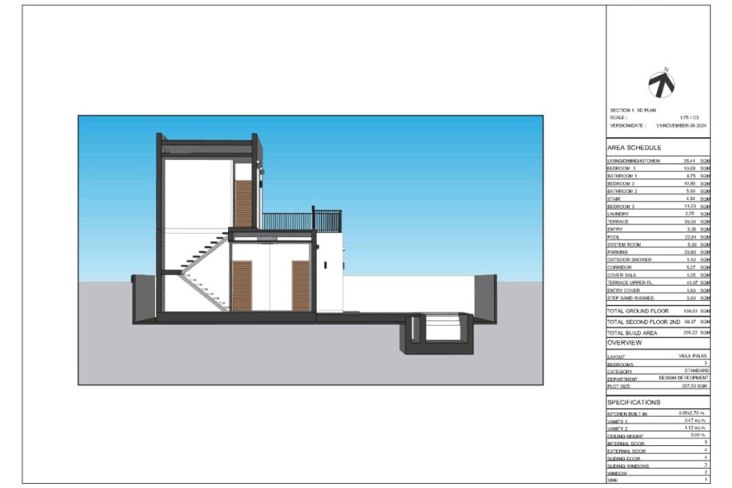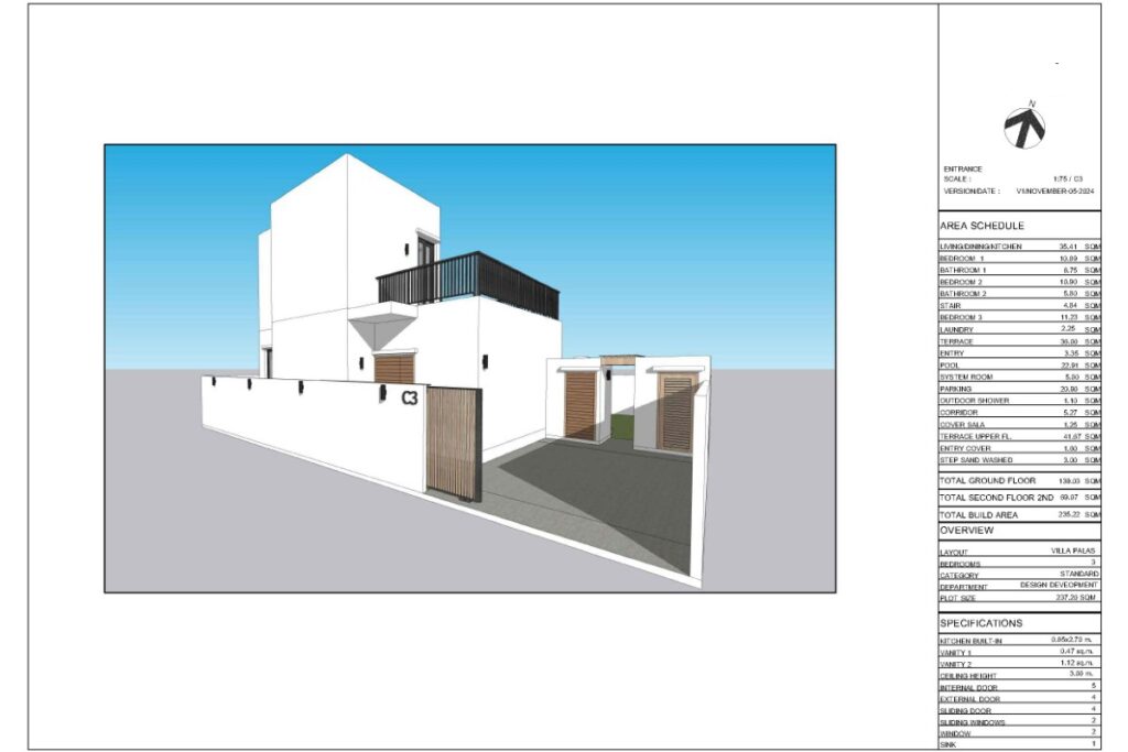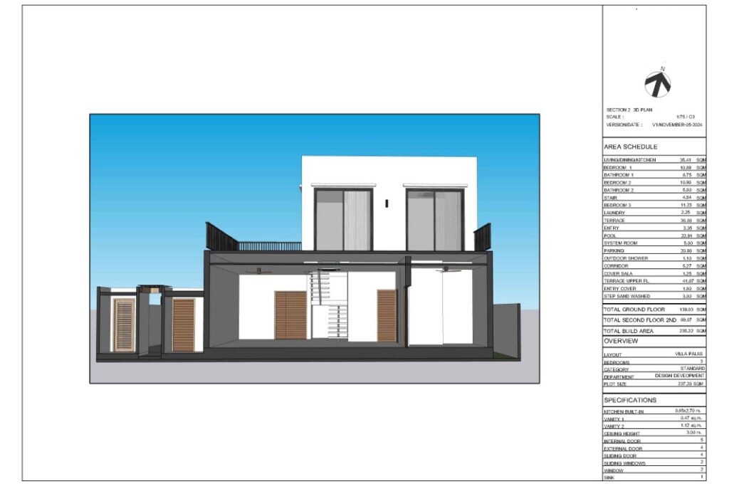 This resale 3-bedroom, 3-bathroom pool villa in Baan Manik is being sold by the owner and is currently under construction. The design takes a Mediterranean-inspired approach, combining minimalistic lines with a modern-rustic aesthetic, neutral colour palette, and wood accents that tie the interior to its tropical surroundings. The villa forms part of a sold-out gated estate of 13 pool villas ranging from 1 to 2 storeys and 2 to 3 bedrooms.