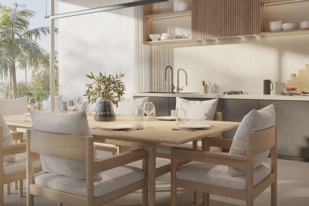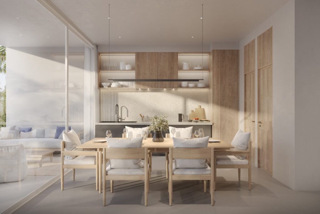 The developer is offering a range of customisation options including furniture packages, an additional bedroom, larger terraces, pool extensions, privacy walls, partially or fully covered terraces, and covered parking.