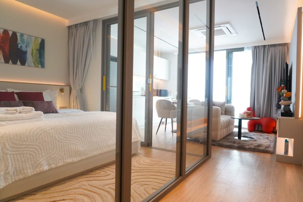 Developed by a well-established Phuket-based company recognised for shaping Boat Avenue into one of the island’s most popular lifestyle destinations, this newly completed waterfront development sits within the Boat Avenue complex in the Laguna area and has been fully operational since early 2026. The project comprises two 6-floor buildings with 102 residential units and 7 commercial units, offering a highly walkable, convenience-led environment with dining, shopping, and amenities immediately on the doorstep.