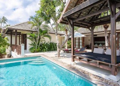 Discover this stunning 3-bedroom villa for sale in the sought-after Chaweng Noi area of Koh Samui, boasting a generous build area of 400 sqm and set on a 550 sqm plot. This modern property offers breathtaking panoramic views of Chaweng Bay’s azure waters and verdant hillsides, crafted by a reputable development team to combine luxury with functionality across two thoughtfully designed levels.