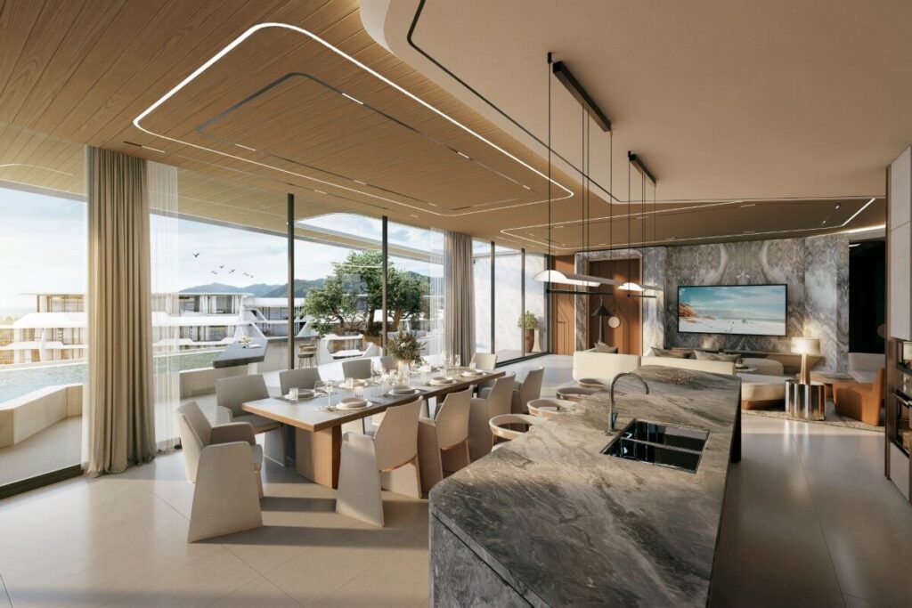 Beside Laguna in Cherng Talay and just minutes from Layan Beach, these off-plan 4-bedroom luxury penthouse condos are the flagship units within a development from a developer recognised for luxury villas across Bang Tao, Layan, and Cherng Talay. Only 2 of these penthouses with private pools are currently available, within a project of 288 units spread across four 6-storey low-rise buildings.