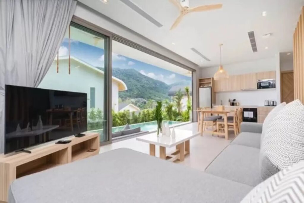 Completed in 2023 and offered fully furnished by the resale market, this 3-bedroom, 3-bathroom hillside pool villa in Kamala sits within a boutique gated development of 15 pool villas, delivered across 4 phases by a developer established in 2016 with a focus on residential projects in Kamala. A sister company handles property management, and an on-site rental management programme is available for investors. The villa is available Thai freehold.