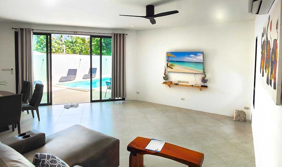 The location in Lamai offers practical access without steep approach roads, with Lamai Beach reachable within a short drive. Local amenities including schools, supermarkets, restaurants and the Lamai town centre are also within convenient driving distance, while Chaweng and Samui International Airport remain accessible by road. The villa is presented as a completed residential property suitable for private use or longer-term stays within one of Koh Samui’s established coastal areas.