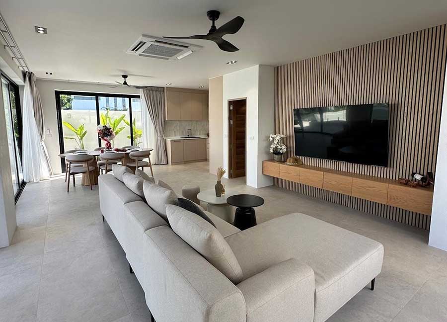 Located in Bo Phut’s established residential area, this newly completed three-bedroom pool villa offers a contemporary layout designed for practical day-to-day living while remaining close to Fisherman’s Village and its expanding mix of dining and leisure options. The position gives the property strong appeal for both personal use and the holiday rental market, as the location is one of the most consistently in-demand parts of the island.