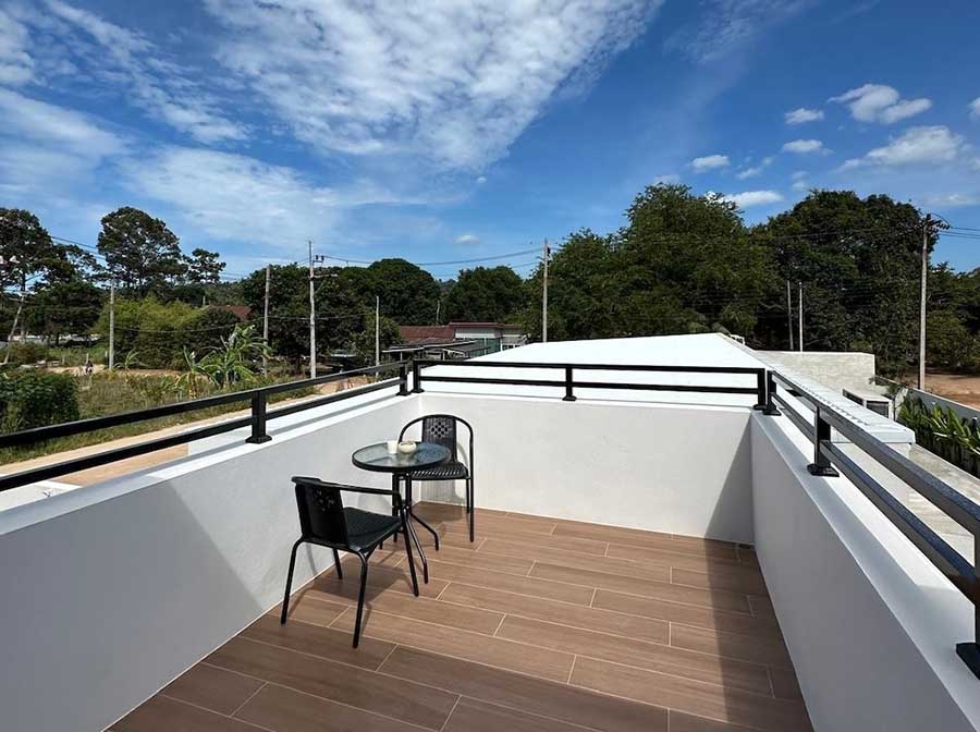 The property sits on a 200 sqm land plot with a flat layout, making circulation around the home straightforward. Utility features include a deepwell water supply, Chanote title, and freehold ownership options. The setting in Bo Phut allows quick access to Fisherman’s Village, where restaurants, cafes, and the weekly walking street market provide a mix of casual and upscale amenities. The beach, supermarkets, and wider services around the ring road are all within a short drive.