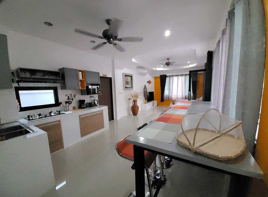 Within the villa, all bedrooms are positioned for privacy, supported by three bathrooms, making the layout suitable for families or hosting guests. Additional practical features include a dedicated laundry area, air conditioning supported by ceiling fans, and high-speed WiFi already in place. The property also benefits from a deep well water system and ongoing pool maintenance service.
