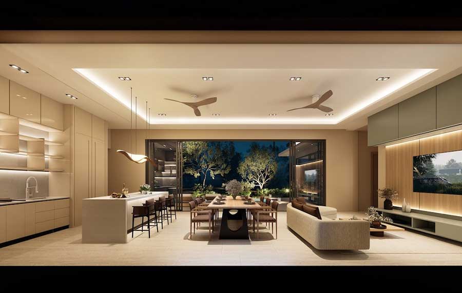 Each villa includes a private salt-based swimming pool surrounded by landscaped tropical gardens, ensuring privacy and low maintenance. A standout feature is the rooftop sala, providing an elevated outdoor lounge for sunset gatherings, yoga, or quiet relaxation with views of the surrounding mountains. The villas also feature private parking, automated gates, and walled compounds that ensure complete seclusion.