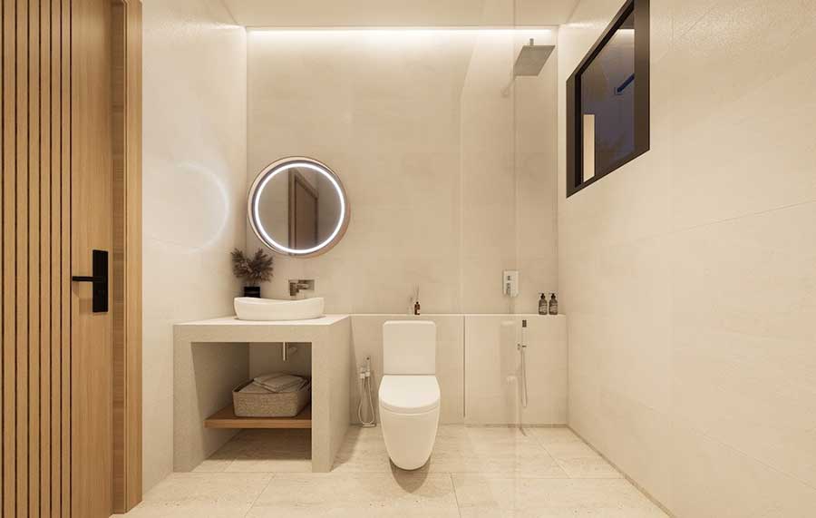 Each villa offers 270 sqm of interior living space set on plots ranging from 400 to 500 sqm. The design focuses on open-plan layouts and a strong connection to the outdoors, using high ceilings, full-height windows, and bright, natural materials. The configuration includes three bedrooms and three-and-a-half bathrooms, providing ample space for families, couples, or investors seeking high-yield rental properties.