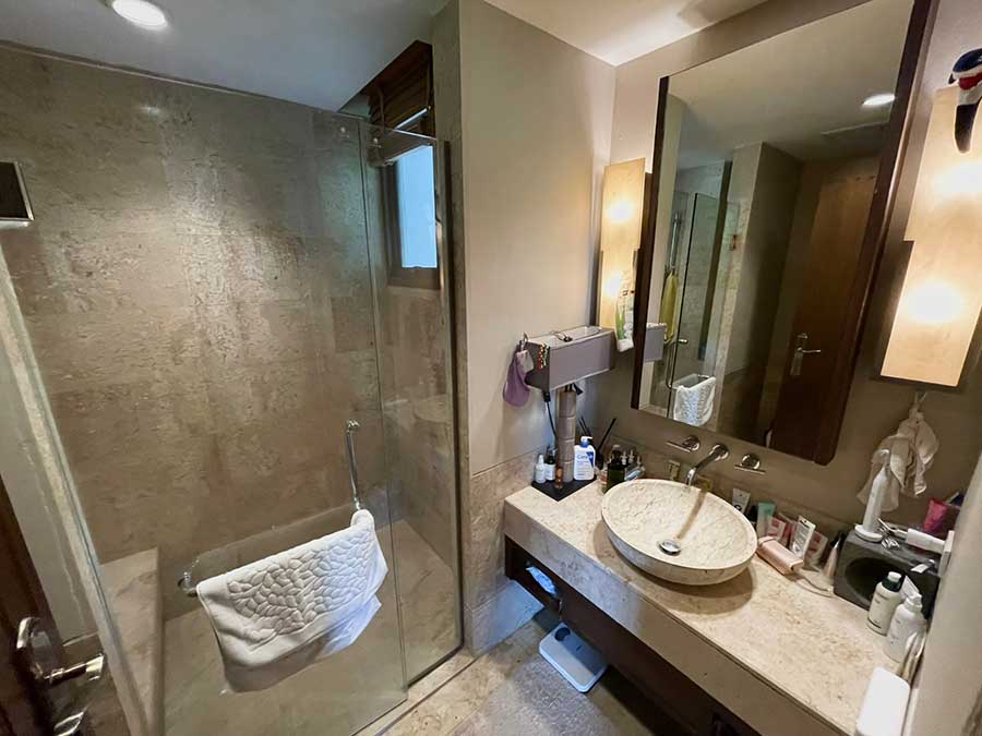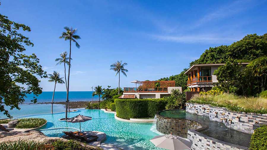 Residents benefit from direct beach access and a range of established communal facilities. These include cascading swimming pools set among mature tropical gardens, a large shared swimming pool, a fitness gym, and on-site spa services. The overall layout of the resort prioritises open green spaces, privacy, and a low-density beachfront environment.