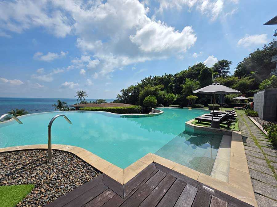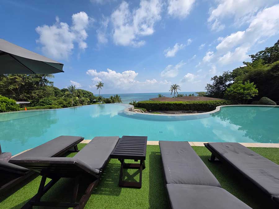 Offered for sale in excellent condition, this spacious 3-bed 224 sqm sea view freehold condo is within an established 4-star beachfront resort on Samui’s tranquil south coast.