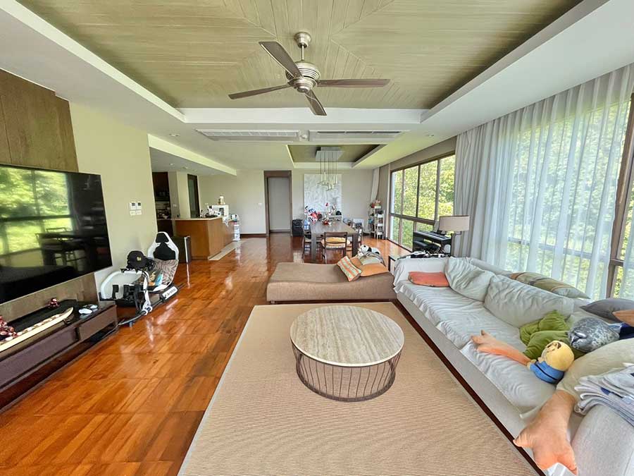 Set within mature, landscaped gardens that slope gently down towards unspoilt Laem Set Beach, the apartment enjoys close ocean views from its private balcony and a peaceful resort setting. The residence provides 224 sqm of internal living space, arranged to suit full-time residential use as well as holiday living, with generous open-plan living and dining areas connecting directly to the outdoor balcony.