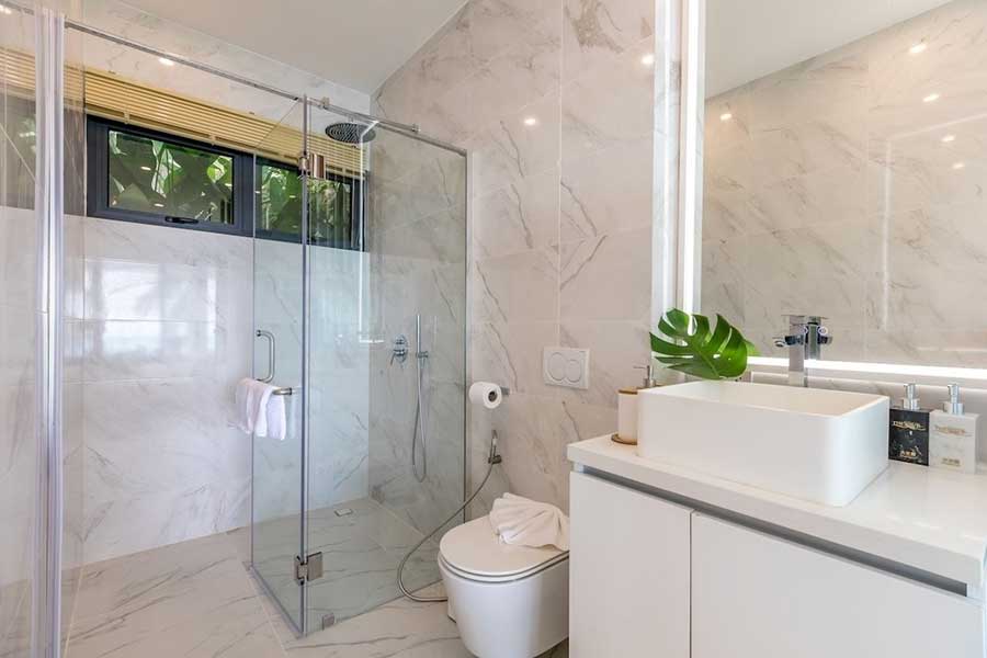 The villa’s setting in Chaweng Noi offers access to nearby bays including Crystal Bay and Coral Cove, both known for clear water and sheltered beaches. Central Festival Samui, restaurants, cafés and Chaweng’s main services are within a short drive, providing convenience without compromising the quieter hillside location.