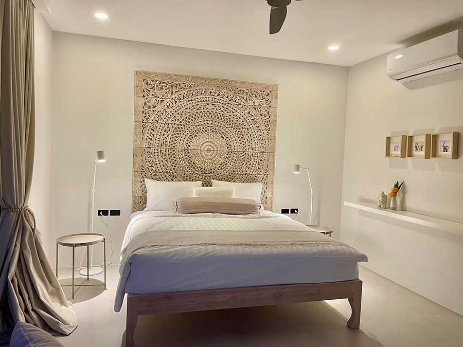 Located in Lamai, this 3-bed pool villa is offered in turnkey condition, designed for immediate occupancy within one of Koh Samui’s established residential areas. The property is positioned a short drive from Lamai Beach, providing access to local amenities while maintaining a quieter setting away from the main tourist zones.