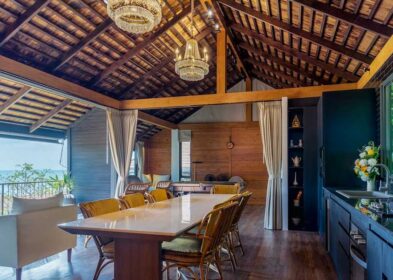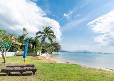 This 3-bed villa sits just steps from the shore in an exclusive beachside estate in Choeng Mon, Koh Samui. Designed in Balinese style across three pavilions, the property features a private courtyard pool with open sea views, all on 500 sqm of freehold Chanote land.