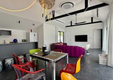 Set in a quiet pocket of Bangrak, The Den Villas is a private four-villa development combining modern design with lush natural surroundings. Each villa offers 3 bedrooms across three levels, with a private 6×3 metre salt-system pool, rooftop terrace, and tropical garden. The layout blends comfort and function for long-stay living or rental investment.