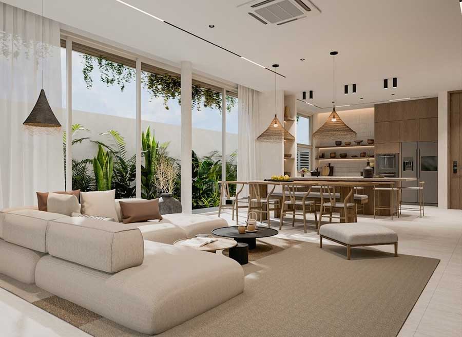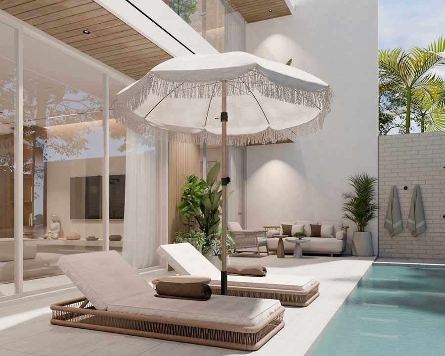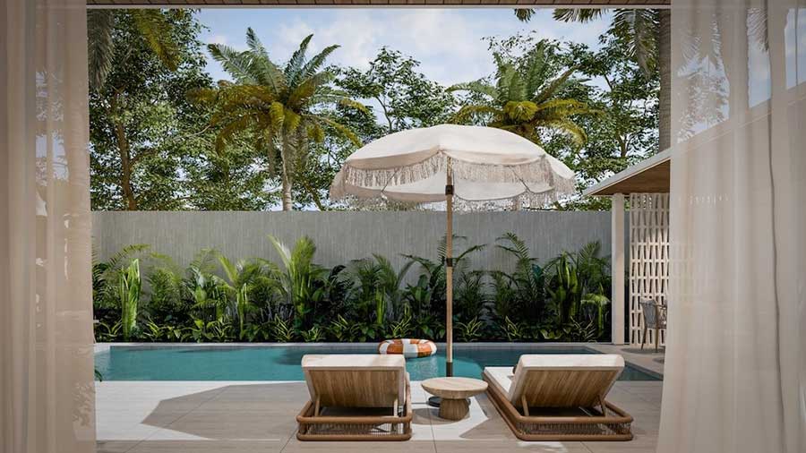Externally, each villa includes a private swimming pool set within a landscaped garden, with outdoor space configured for seating and dining. Private parking is provided within each plot boundary. The development is structured to support both owner occupancy and rental use, with property management services available.