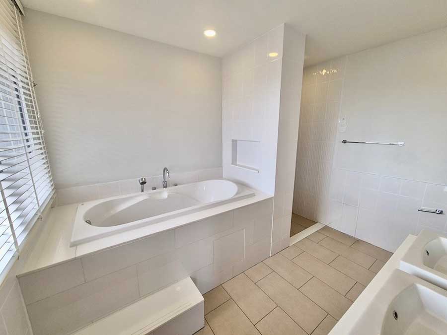 Accessed via a private driveway, the villa includes an undercover parking area and a side entrance leading to a well-maintained garden. On this level, one of the guest bedrooms is positioned with its own bathroom, offering separation from the main living areas. A passageway also provides access to a further ensuite guest bedroom overlooking the driveway.