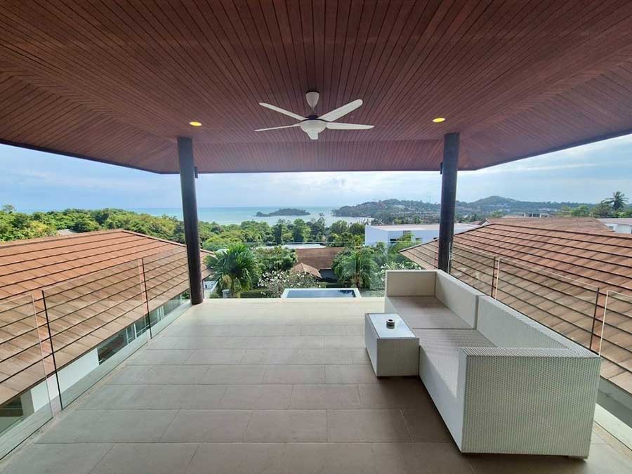 Available for resale with the Horizon development close to Choeng Mon Beach, this expansive 5-bed sea view pool villa offers sweeping ocean and island views. Set within the government-licensed, fully managed and gated Horizon Villas estate, the property is positioned to capture sunrise views across Choeng Mon Bay, the beach and the nearby island of Koh Fan.