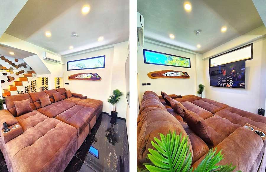 The villa includes fibre optic internet with dual routers, LED ambient lighting, a professional barbecue setup and a secure digital entry system. A 10,000-litre underground water tank with high-grade filtration and a Coway hot/cold water dispenser supports reliable water supply — a practical advantage in Koh Samui.