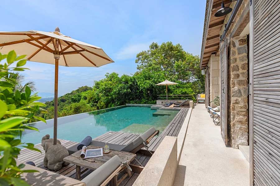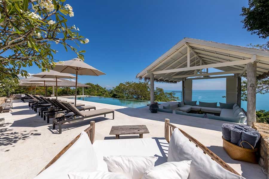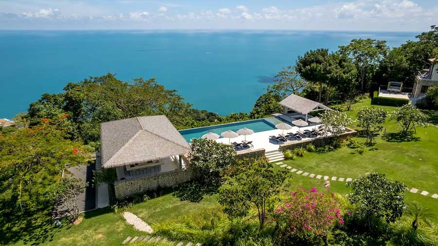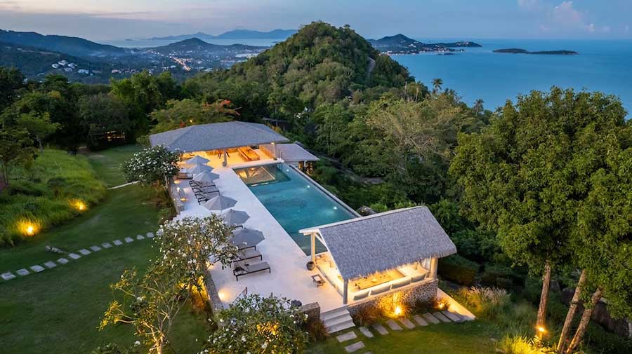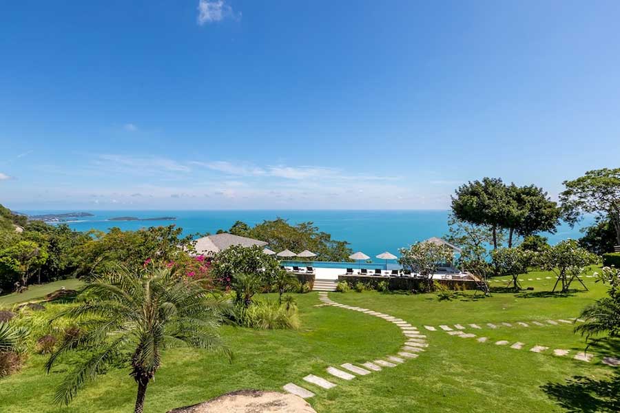 Set across an extensive hillside estate in Chaweng Noi, this 7-bed sea view property occupies approximately 11,200 sqm of land, with multiple buildings arranged across landscaped grounds. The layout has been designed as a collection of separate pavilions connected by pathways, creating a property that combines privacy between living areas with open views across the coastline.