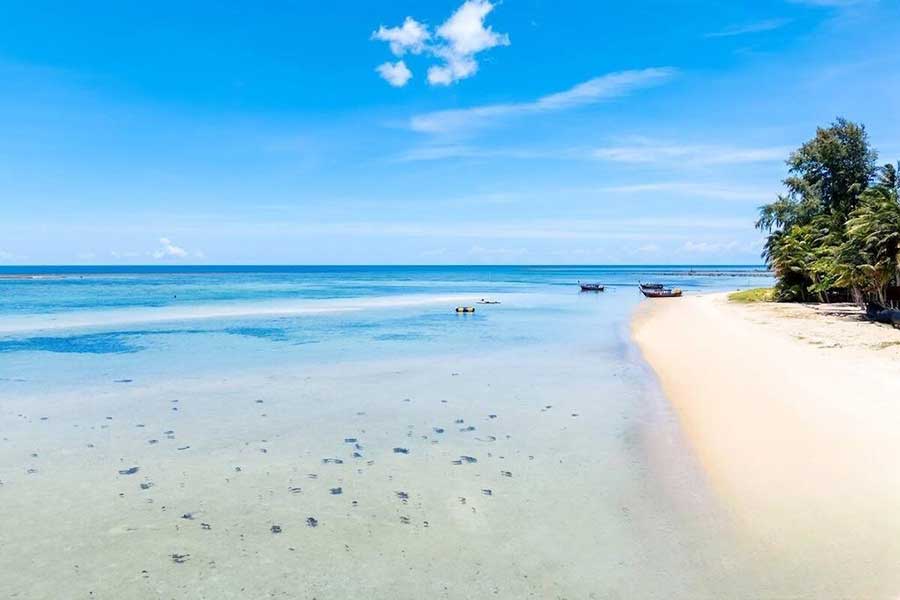 Directly fronting the shoreline in Lamai, this beachfront villa is positioned on a 516 sqm freehold plot, offering immediate access to the sea along a quieter stretch of the island’s east coast. The property sits within the Maret Beach area, known for its gradual entry into the water and consistent swimming conditions, with an east-facing aspect providing open sunrise views across the Gulf of Thailand.
