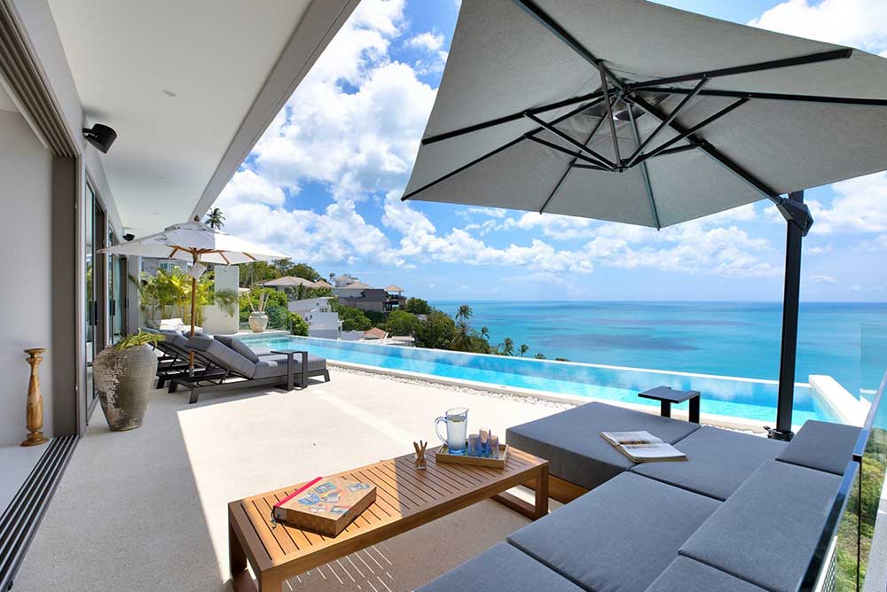 Access to the villa is straightforward compared to many hillside properties in the area, with only a short section of steep road. The location is just five minutes from the island’s ring road, ten minutes from both Lamai and Chaweng, and twenty minutes from Samui International Airport.