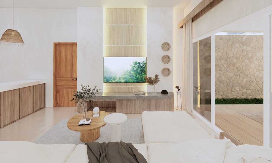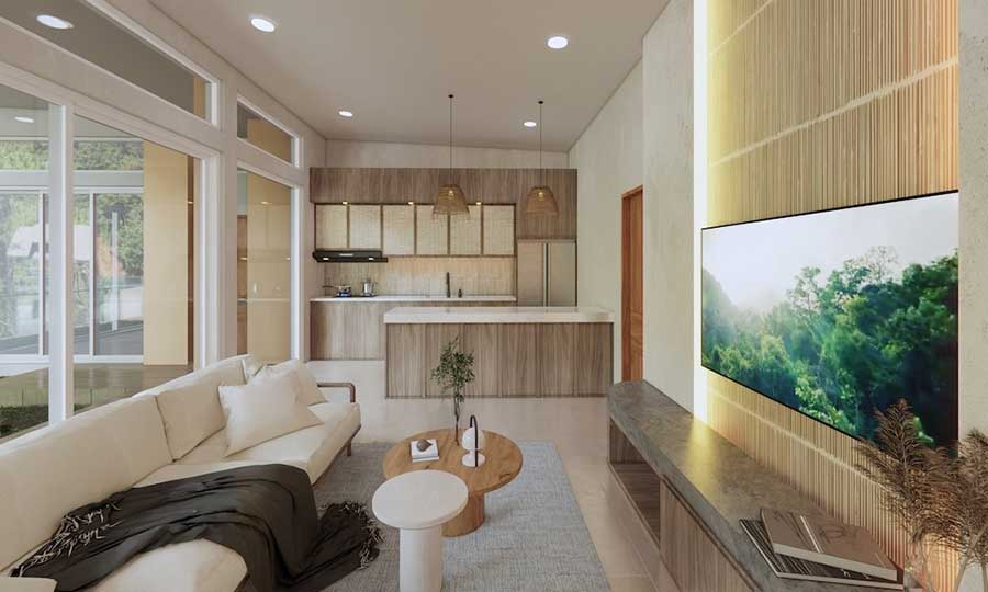 Finished with modern materials and a minimalist aesthetic, the villa combines practicality with island style. Large windows, natural light, and cross ventilation support energy efficiency, while thoughtful landscaping ensures privacy.
