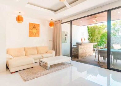 Located on the upper hillside of Bo Phut, this new villa for sale in Koh Samui offers panoramic views stretching across the Gulf of Thailand. From the elevated position, both Bo Phut and Chaweng Bays are visible, offering a rare dual aspect from the same terrace. The villa is part of a private three-villa project, developed by a respected local builder with a long-standing reputation for quality on Koh Samui.