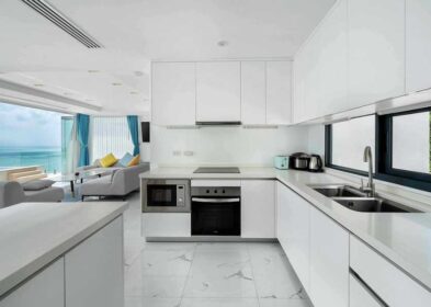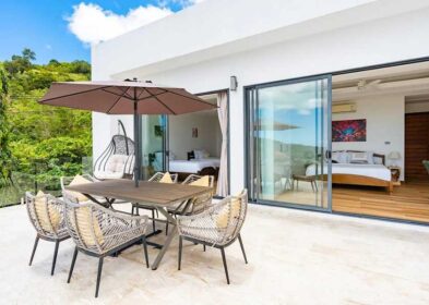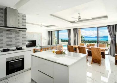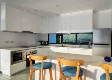 The villa includes four double en-suite bedrooms, each designed as a private sanctuary with a dedicated terrace to take in the tropical surroundings. High-quality finishes extend throughout, creating a harmonious blend of elegance and practicality. The high-spec kitchen, fitted with premium appliances, integrates seamlessly with the living space, perfect for enjoying meals while taking in the views.
