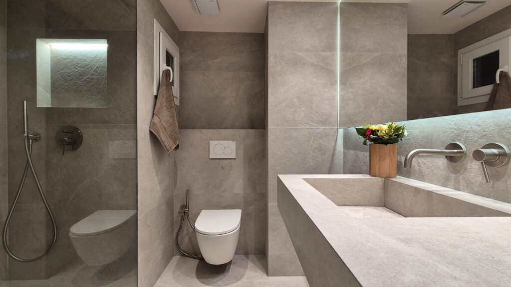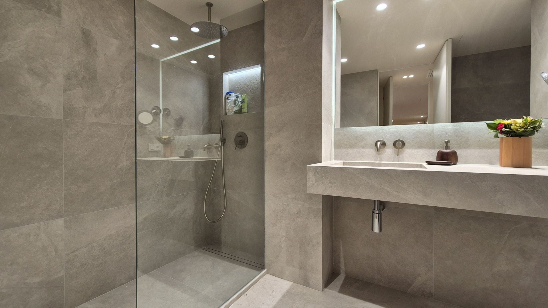 Three bedrooms and two bathrooms are distributed across the apartment, providing practical accommodation for residents and guests. The renovation introduced modern fittings and quality materials throughout the property while maintaining a comfortable residential layout.
