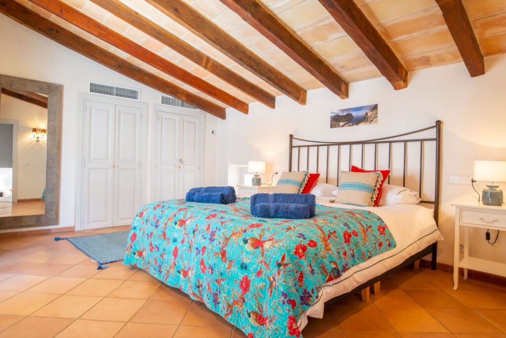 Two terraces provide additional outdoor areas. The roof terrace in particular offers sweeping views across Pollensa’s rooftops, the Puig de Maria and surrounding countryside, with distant glimpses of the sea.