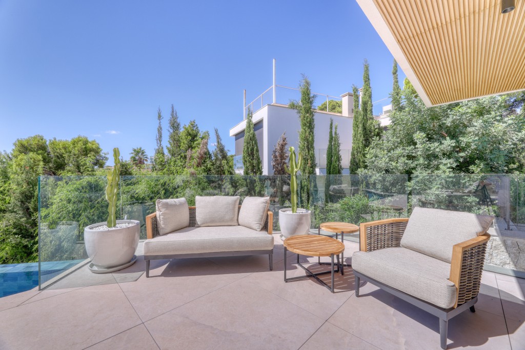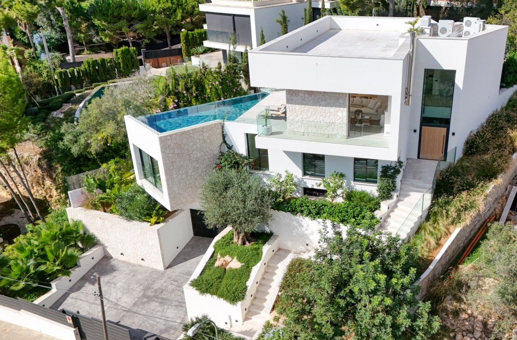 This contemporary luxury 4-bed villa sits in a premium Alt Bendinat location, just a short stroll from Portals Nous Beach and within easy reach of Puerto Portals marina and the Royal Bendinat Golf Course.