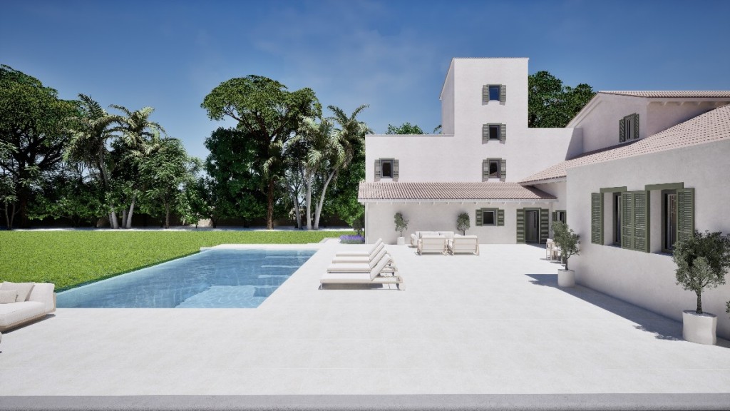Located in the exclusive coastal area of Mal Pas in Alcudia, this luxury 6-bed villa in Mallorca is undergoing a complete reformation and sits on a private 6,000 sqm plot just metres from the white sandy beaches of Platja de Sant Pere and Platja de Sa Font de Sant Joan.