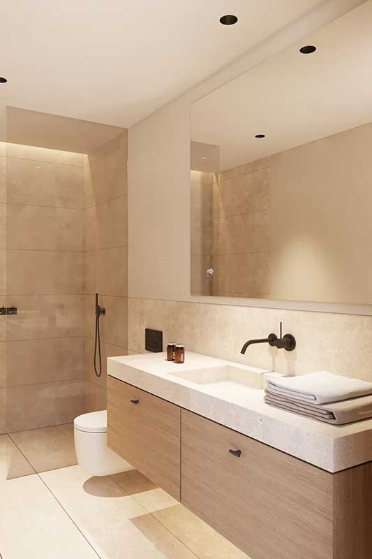 Developed by Prime Projects Mallorca, the homes are set in a quiet residential pocket of Cala Major, combining privacy with excellent access to the city. With central Palma only five minutes away and Cala Major’s sandy beach, Bendinat Golf, and the Calanova marina all close by, the location is one of the most convenient on the southwest coastline.
