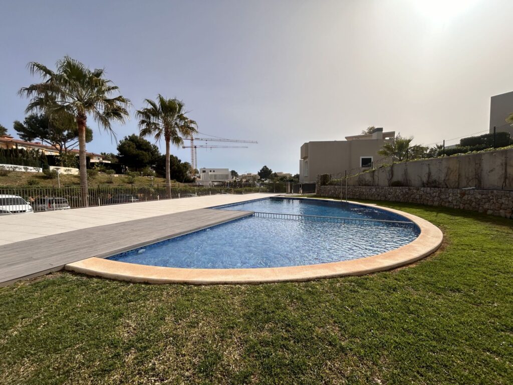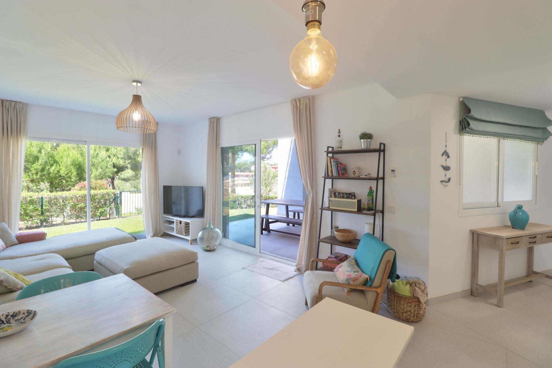 Ground floor apartments with private garden space are uncommon in this part of Mallorca, and this fully reformed three-bedroom unit in Cala Vinyes offers exactly that – a flat, wrap-around green space that works particularly well for families with young children or pets, without the safety concerns of elevated terraces. The property sits within a small gated community developed by Taylor Wimpey around 2017, with solid build quality and well-maintained communal areas throughout.