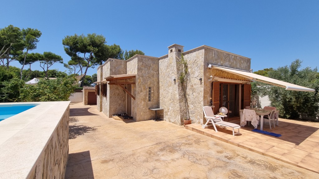Located in El Toro, Calvia, this Mediterranean-style villa features beautiful natural stone walls, generous outdoor living areas and a relaxed coastal setting close to Port Adriano. The property sits on a 666 sqm plot surrounded by greenery and offers 160 sqm of internal space designed for comfortable family living.