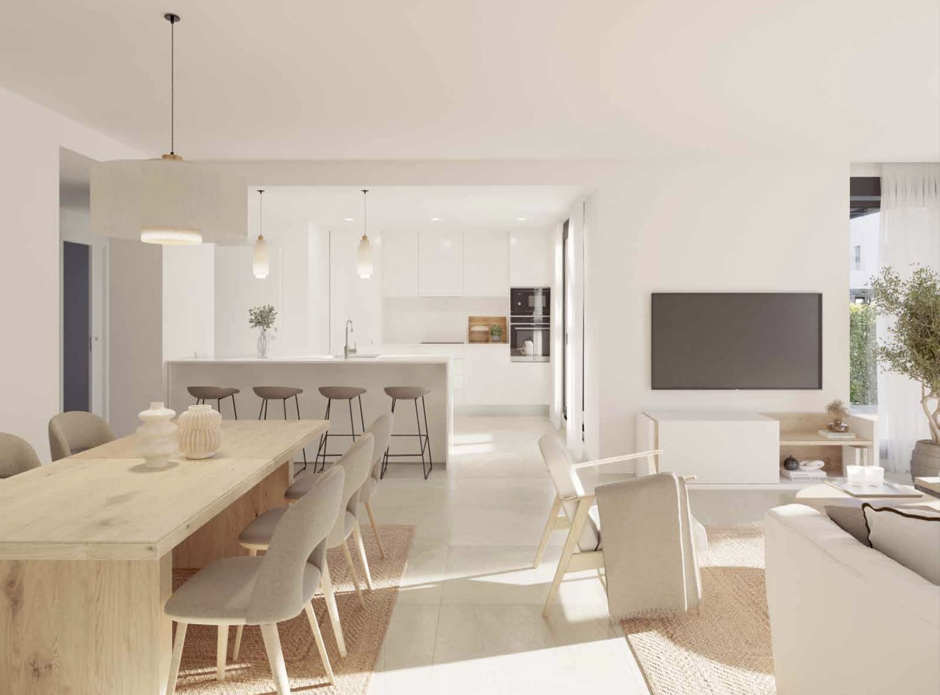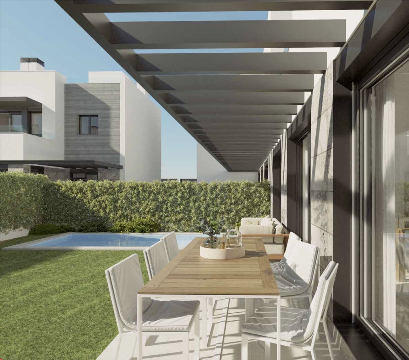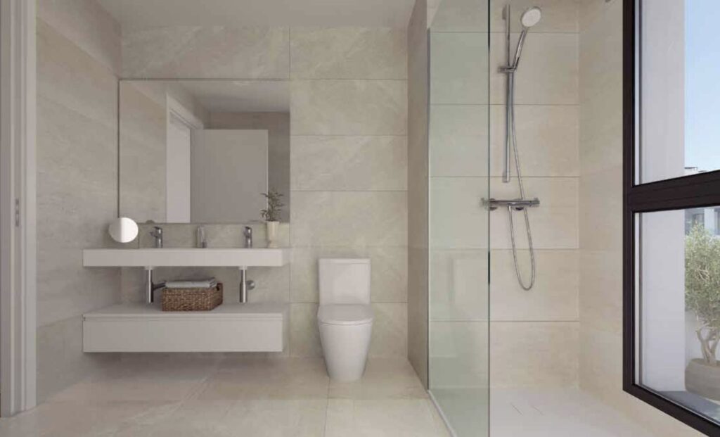 Sustainability is central to the development. Aerothermal heating and cooling systems, radiant underfloor climate control, water-saving installations, high-performance glazing and Passivhaus certification highlight the commitment to efficiency. Even the pool system uses saltwater chlorination for low-impact maintenance.