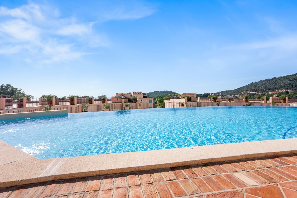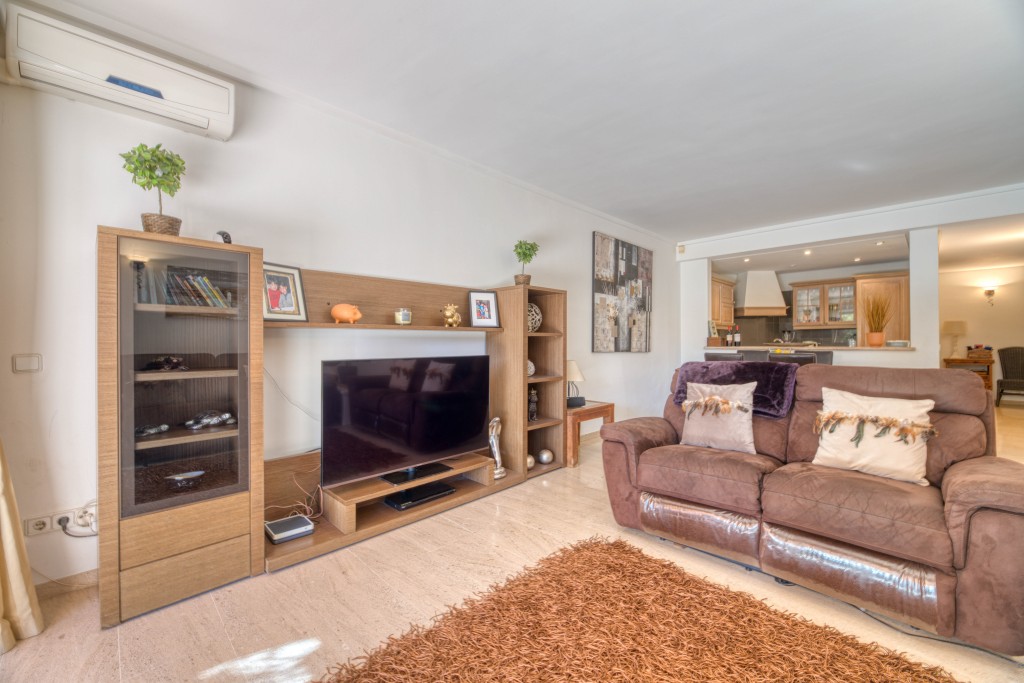 This ground-floor apartment is located in an exclusive gated community in Bendinat, close to the golf course. The south-facing position ensures natural light throughout the day, while private outdoor areas provide both sea and golf course views.