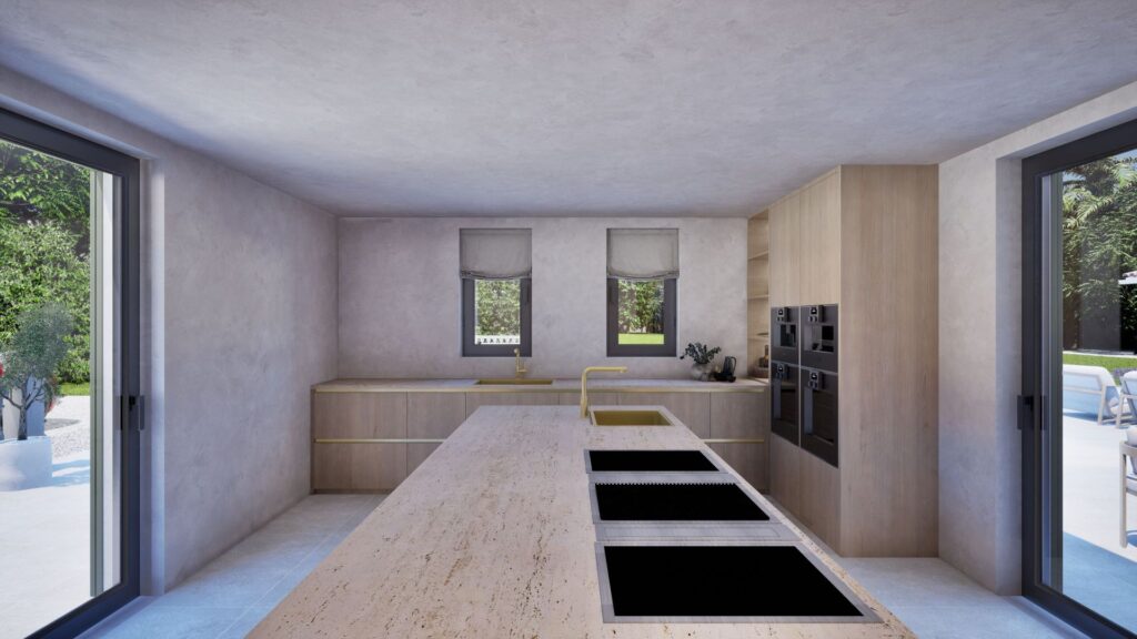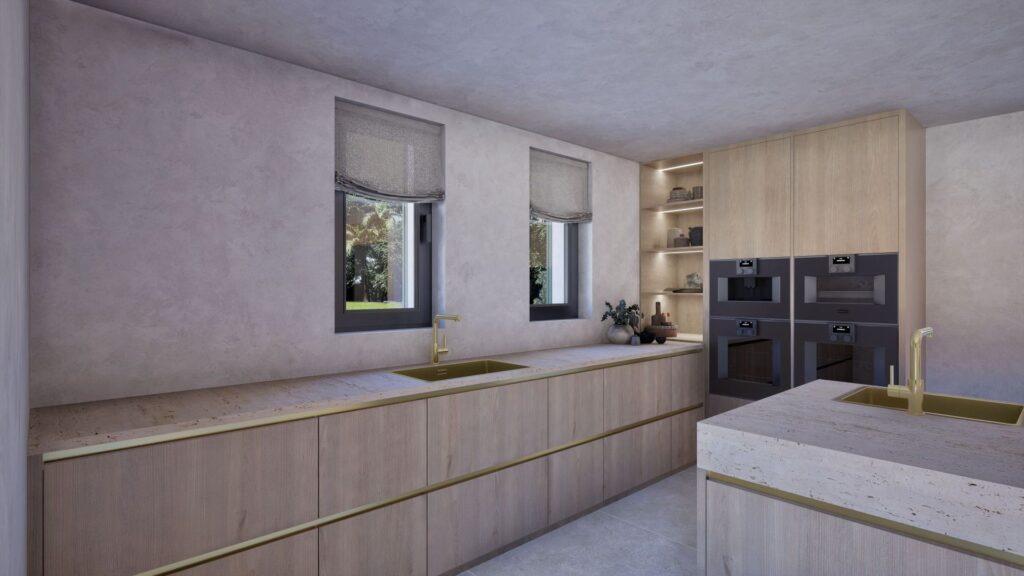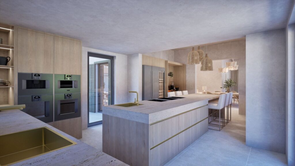 The property will be completed to the highest specification, including underfloor heating, air conditioning, KNX smart home technology, a full security system, brushed gold fittings, a designer kitchen, reinforced thermal insulation and porcelain flooring. Every element of construction has been planned for comfort, efficiency and longevity.