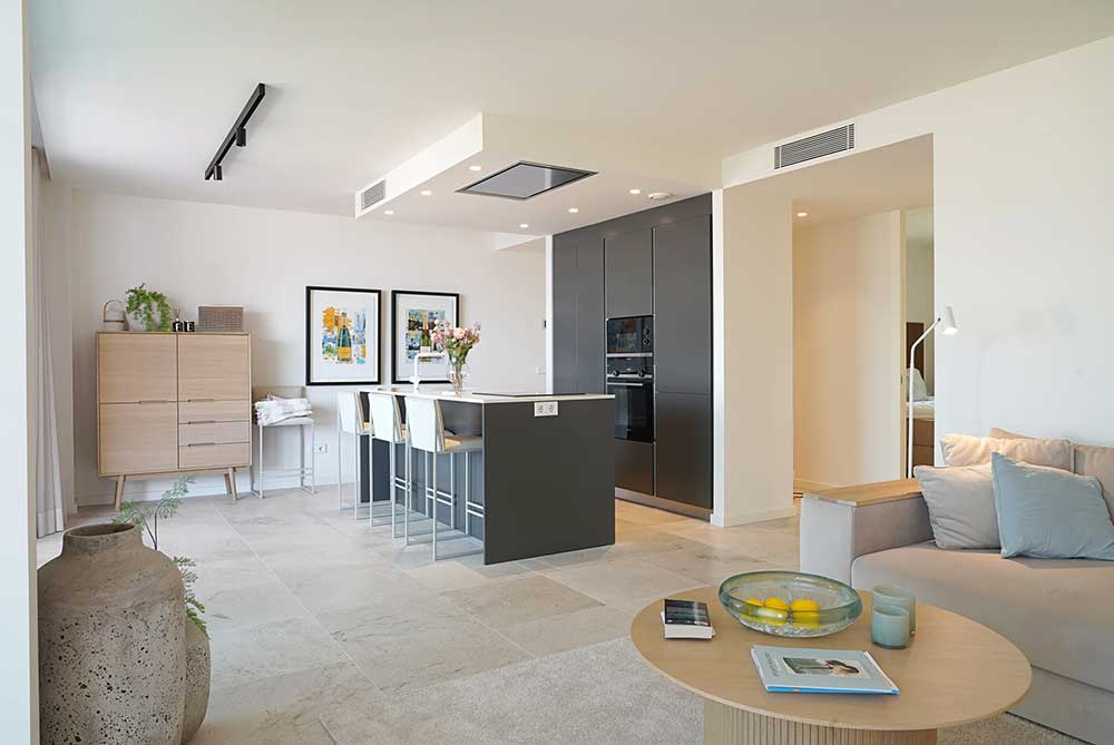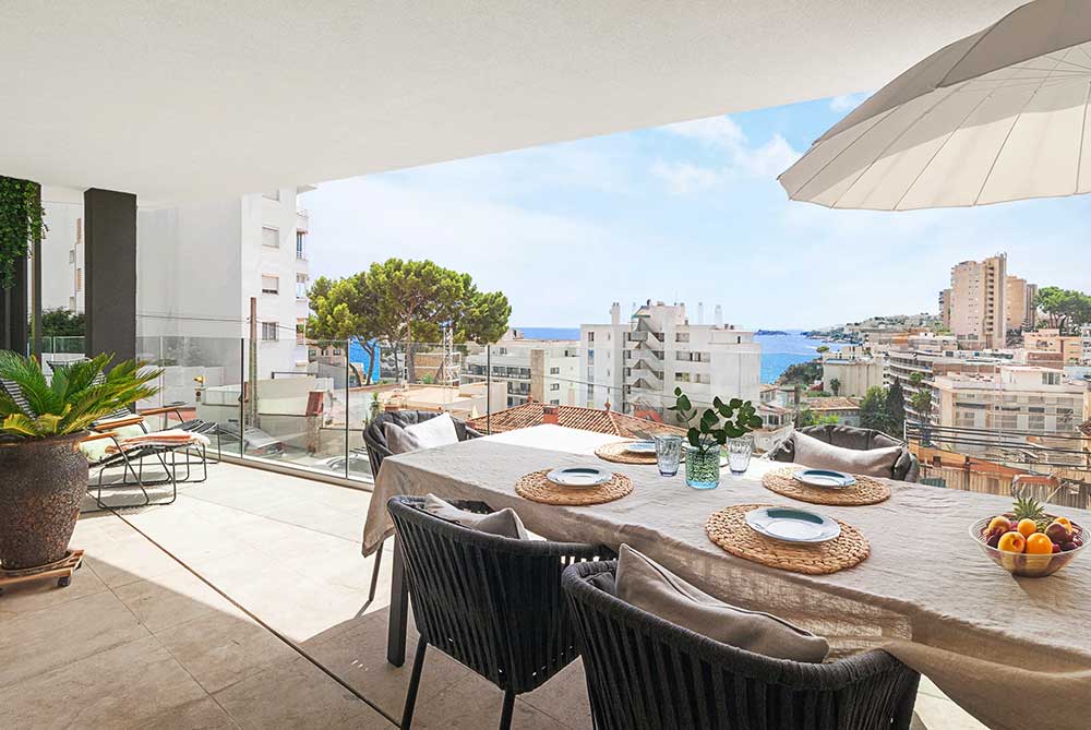 Just a stroll from Cala Major Beach in Palma, this amazing ocean view apartment is part of a luxury complex constructed in 2023, featuring minimalist design and bright open-plan living across 80 sqm of internal area.
