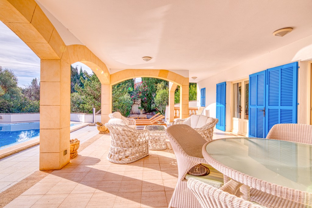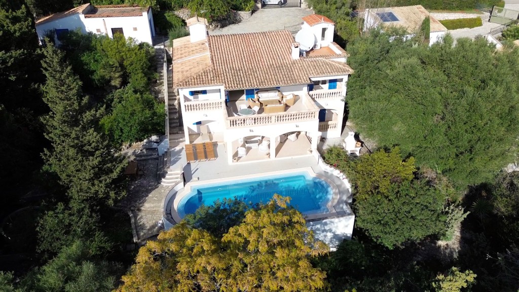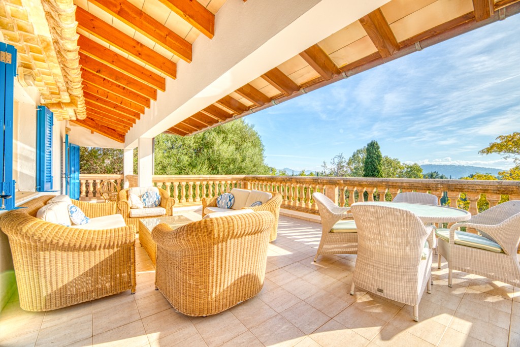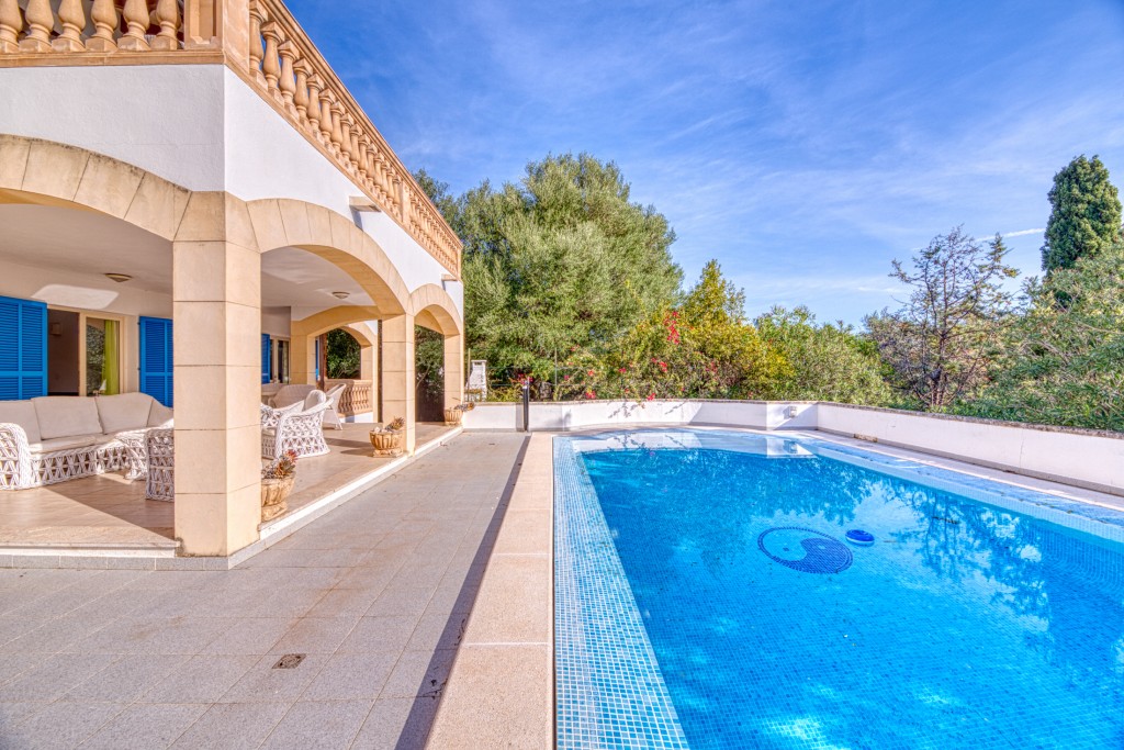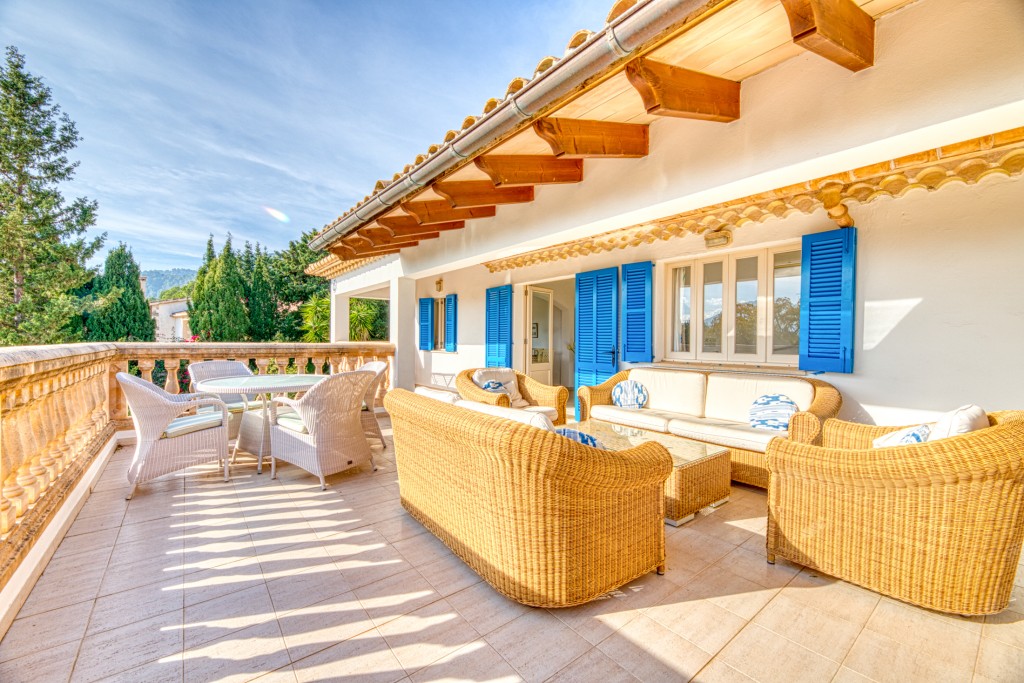 Beautiful mountain-view detached villa for sale in La Font, an exclusive residential area just outside Pollensa town, offering a scenic and tranquil setting with the Tramuntana mountains as a backdrop.