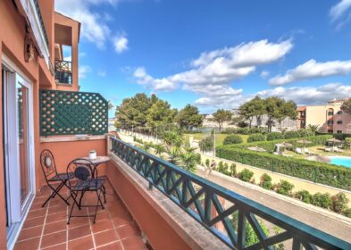 Positioned on the second floor of a residential building in Portals Nous, this 3-bed apartment offers a bright interior with a balcony overlooking the communal pool and garden areas, within walking distance of the beach.