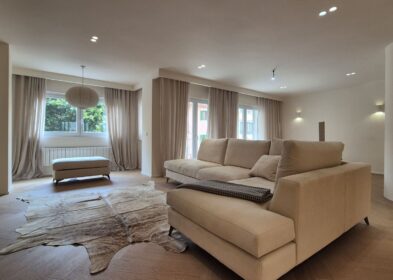 The apartment features a generous 180 sqm private garden with a jacuzzi, fruit trees, and multiple outdoor zones for relaxing or safe children’s play. The outdoor space is fully enclosed, offering privacy and tranquillity.