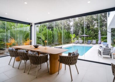 40 sqm covered terrace with garden and pool views