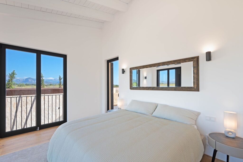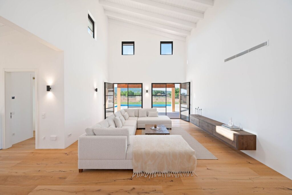 Set on a vast 17,925 sqm plot, this newly constructed finca-style villa offers 645 sqm of modern, energy-efficient living space with panoramic views of Mallorca’s iconic mountain range.