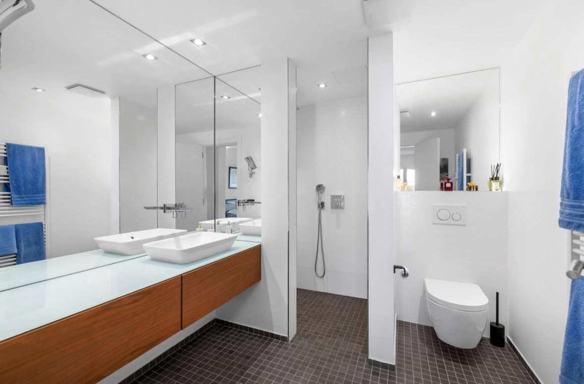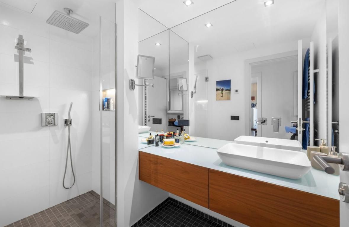 The kitchen is equipped with Miele appliances and includes a mineral water filtration system designed to provide high-quality drinking water directly within the home. The apartment also incorporates integrated air conditioning and underfloor heating throughout, providing comfortable year-round living conditions.