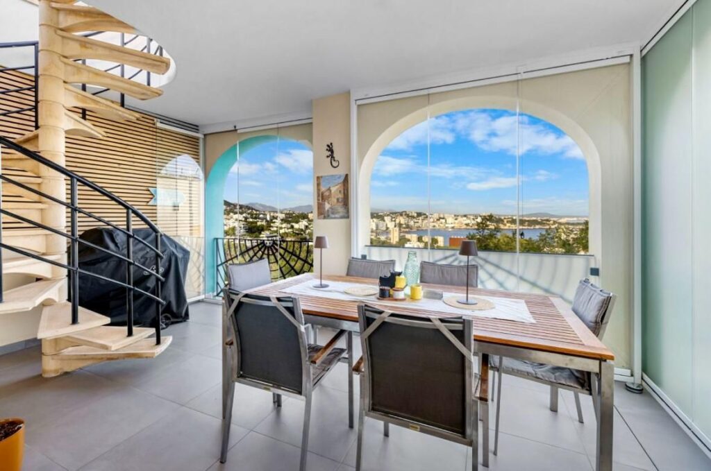 Panoramic views across the Mediterranean define this renovated 3-bed penthouse located within the Sa Vinya community in Bendinat, one of the most established residential enclaves in the municipality of Calvia in southwest Mallorca.